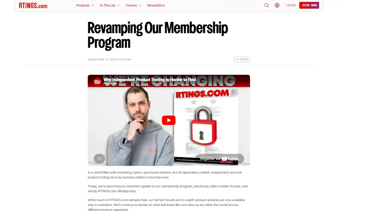 En proposant aux membres de voter pour les prochains produits testés, RTINGS ne vend plus seulement du contenu, il vend de l’influence sur son flux de travail. C’est une stratégie de fidélisation qui transforme le lecteur en « actionnaire » de la ligne éditoriale.